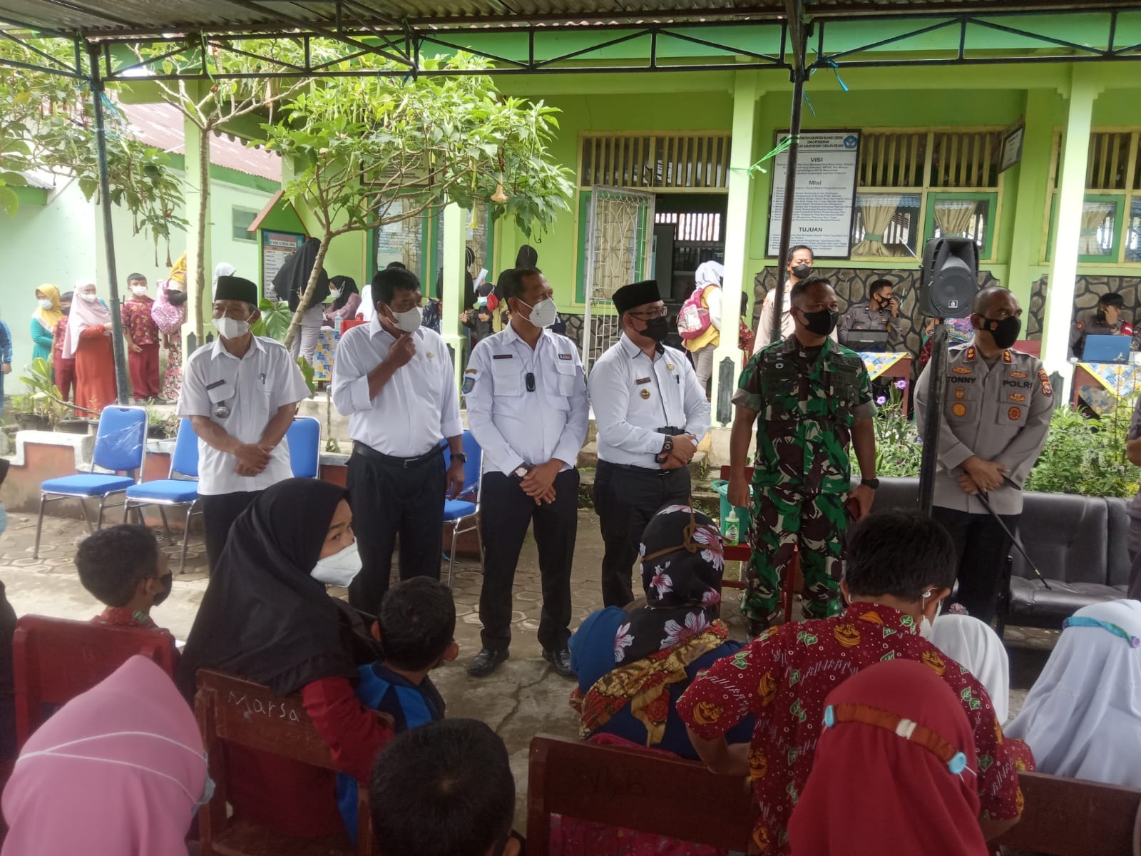 Vaksinasi yang di gelar hari ini berjalan dengan tertib dan tetap mengikuti aturan protokol kesehatan. Ratusan siswa SDN 105 sangat antusias mengikuti vaksinasi. (Red)